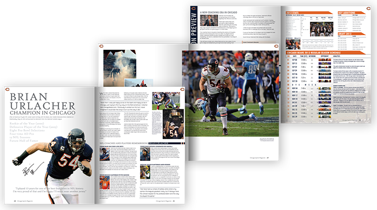 Included at the end of the spread is the Chicago Bears 2013 Season Preview, that includes an article about the new head coach of the Bears, Marc Trestman, key players to look for in the upcoming season, and the full 2013 regular season schedule.